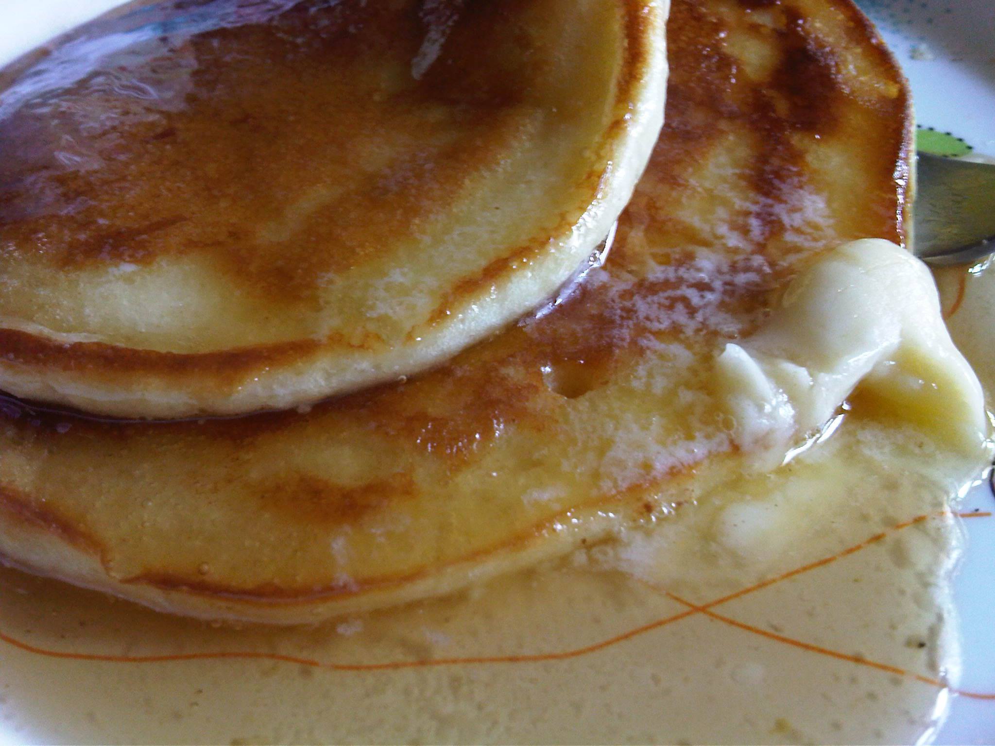 This American breakfast and midnight-snack favorite; a large pancake soaked with melted butter and covered with sliced bananas and flowing chocolate syrup. Tender and tasty!